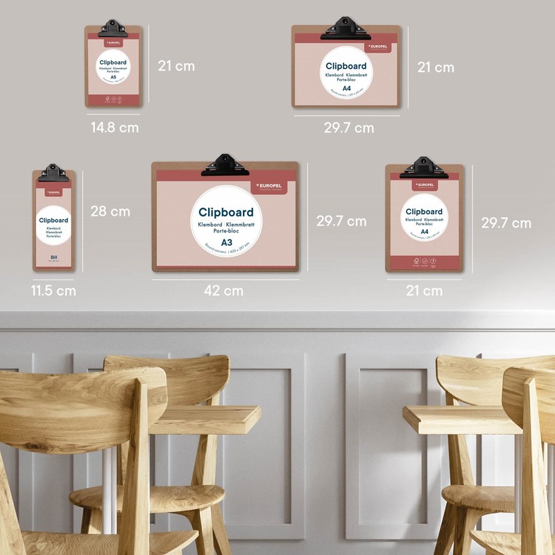 - BUILT TO LAST: durable and sustainable wooden clipboards, FSC certified for environmental friendliness. Designed for a smooth writing surface and secure grip with black clip (75mm)