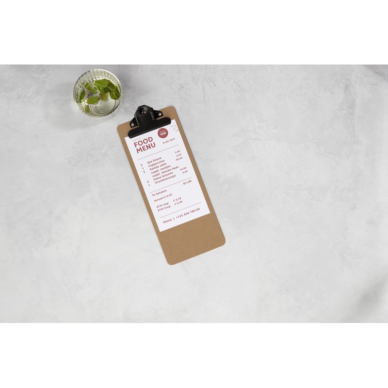 EUROPEL Wooden Clipboard Mini/Bill Size FSC Certified MDF with Black Metal Clip for Classroom, Office, Shop, Restaurant, Warehouse, 280x115x3mm