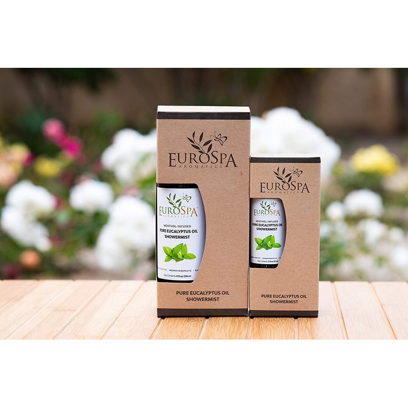 EuroSpa Aromatics Pure Eucalyptus Oil ShowerMist and Steam Room Spray, All-Natural Premium Aromatherapy Essential Oils - Menthol Infused, 8oz