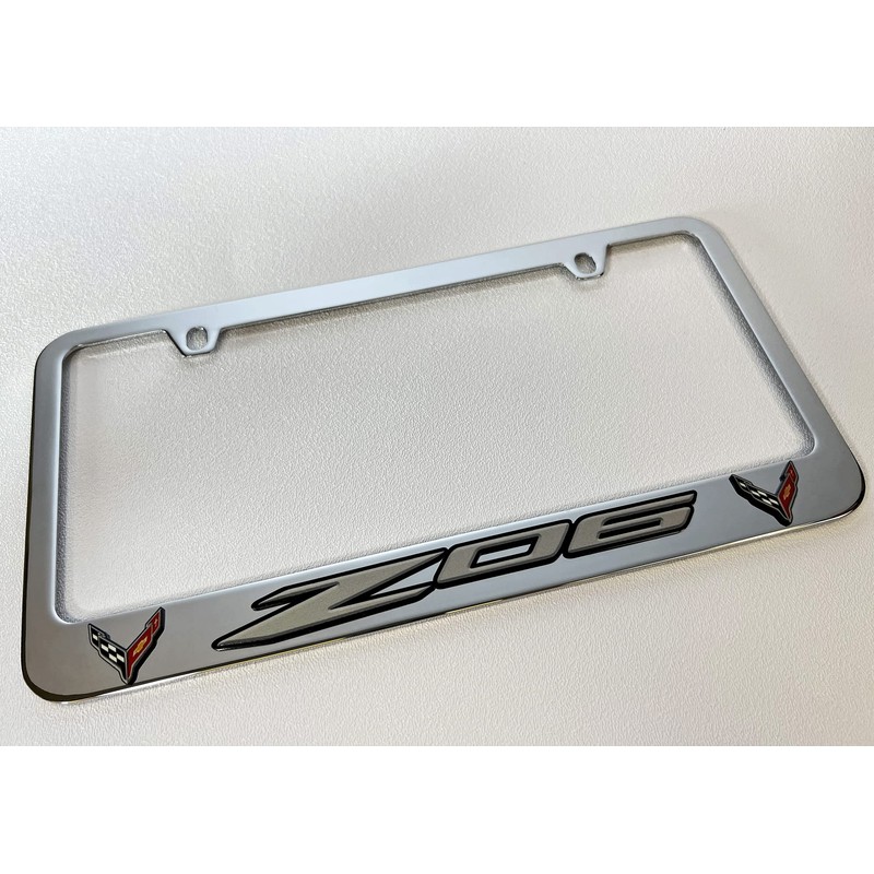 Eurosport Daytona- Compatible with 2020 - Current, Corvette C8 Z06 Logo Chrome License Plate Frame