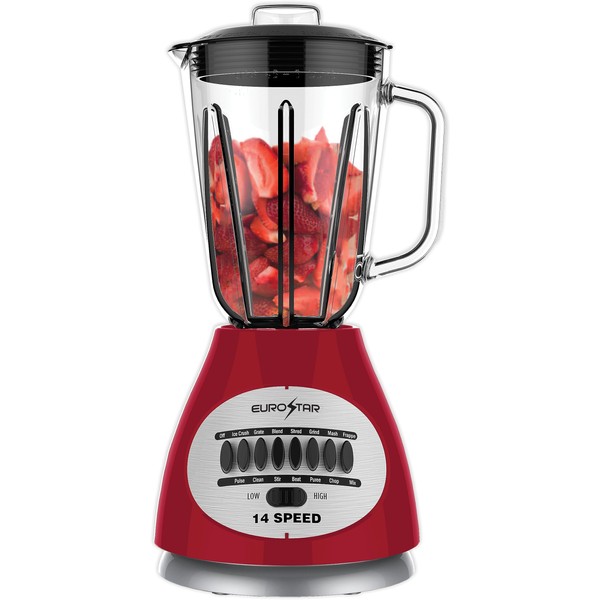 EUROSTAR 450W 14-Speed Glass Jar Blender (RED)