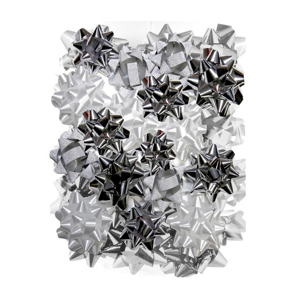 Eurowrap Winter Metallic Silver & White Ribbon Bows - Pack of 16