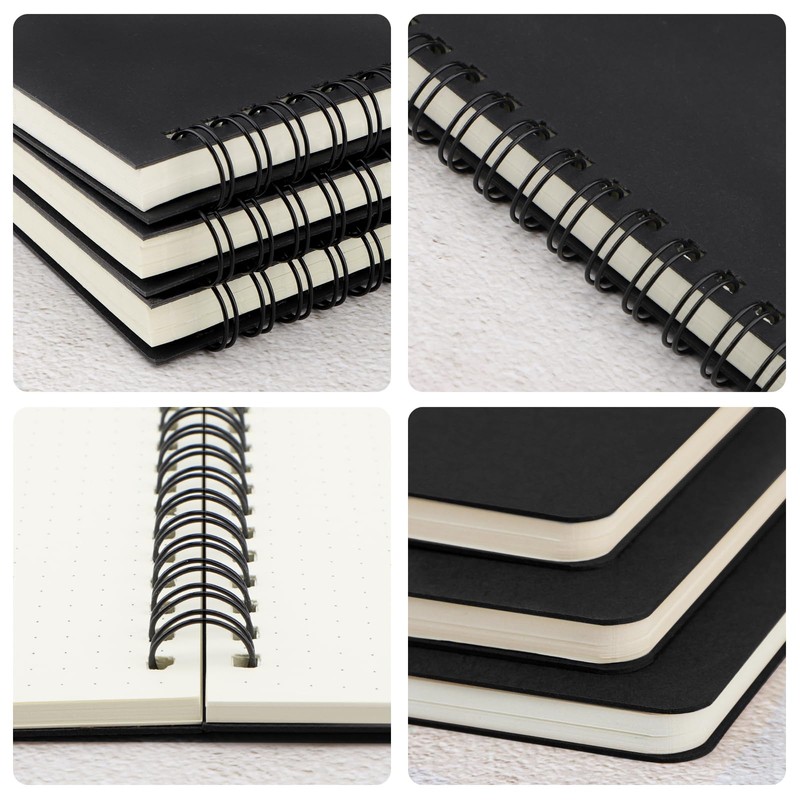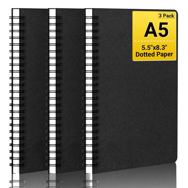 EUSOAR Dotted Journal, A5 3Packs 5.5"x8.3" 120 Pages Hardcover Wirebound Spiral Notebook Journals, Journaling Notebooks for Women Men Sketching Math Drawing College Office Note Taking Writing-Black