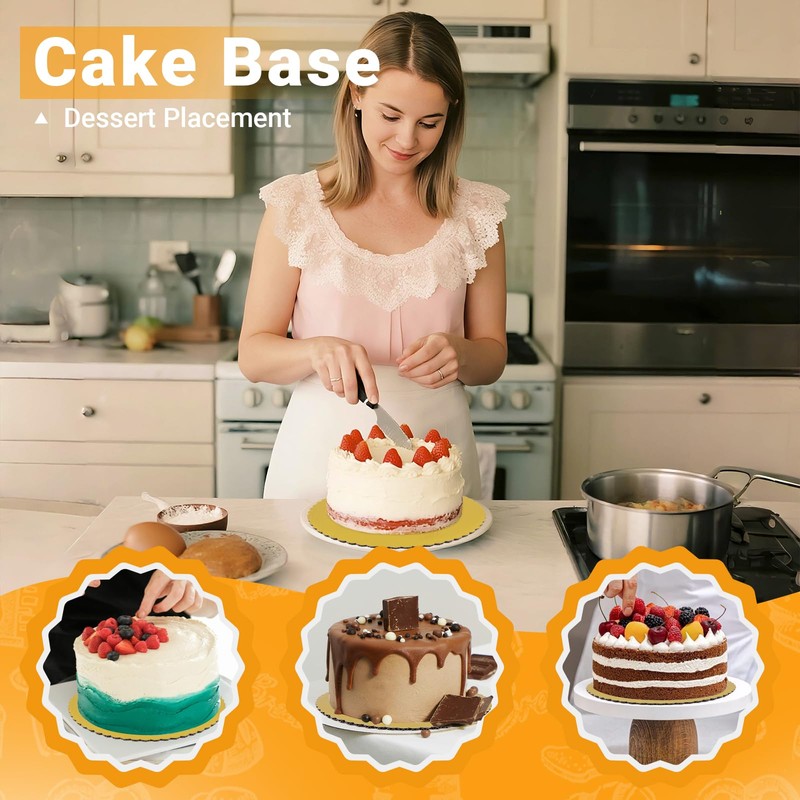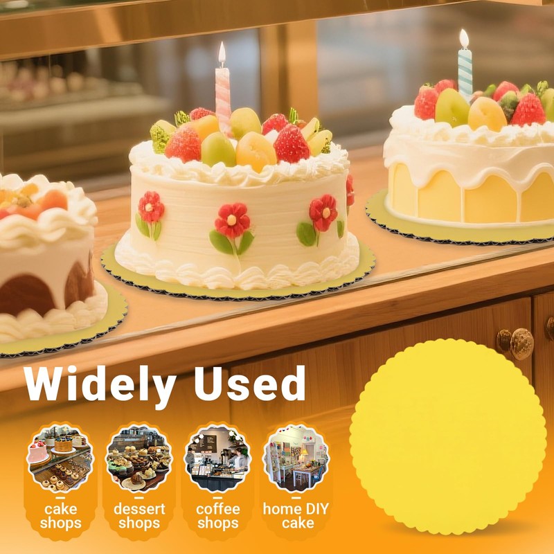 - Wide ApplicationThese round cake boards are good for versatile use in kitchens, bakeries, patisseries, and various celebrations including birthday parties, weddings, engagement gatherings, family reunions, bridal partys, and baking-themed events. They can function not only as cake boards but also as serving trays for pies, breads, pastries, and even pizzas.