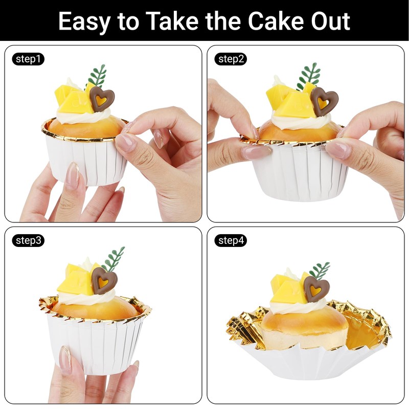 - 【Easy to take the cake out】-Pull up the upper edge circle of the cup and then tear the cup ,untill the cup be expanded into a piece of paper. Finally you can take the cupcake out easily without any damage for your delicious cake.