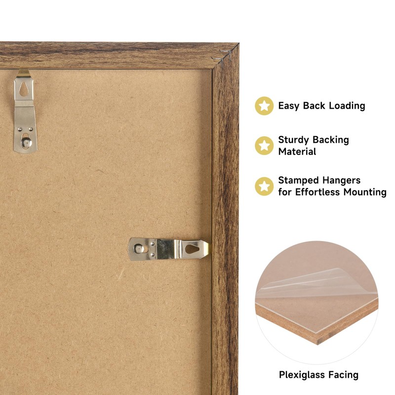 - Elegant Walnut Woodgrain Frame 🌳 - This 10x14 picture frame features a rich deep walnut-toned faux woodgrain made from premium PS material, perfect for showcasing and enhancing the beauty of your artwork. Its timeless design effortlessly complements any style, offering a perfect blend of eco-friendly elegance and practicality. Ideal for spaces seeking a touch of rustic charm with modern appeal.