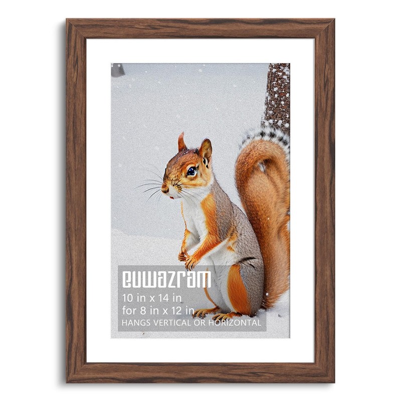 euwazram Rustic Walnut 10x14 Frame - Single Frame, 10 x 14 Poster Frame with Mat for 8x12, Picture Frames for Artwork, Puzzles, Photos and Movie Posters