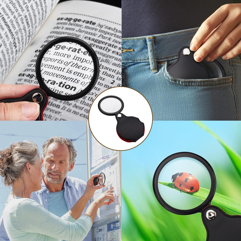 Comfortable rotating design: thanks to the 360 degree rotation design, this small magnifying glass can be easily folded into the protective case, which also serves as a comfortable grip. Simply rotate it to use when needed, or fold the lens into the case for safe storage.