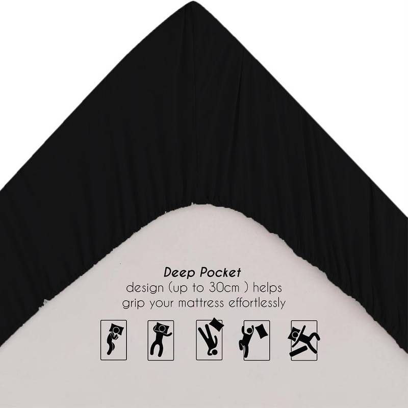EV Dekor®MF123 Fitted Sheet Super King, Black - Deep Pocket Bedsheet 12inch (30 cm) - Soft Brushed Microfibre Fabric - Shrinkage and Fade Resistant - Bottom Sheet - Super King Bed Bedsheet Fitted