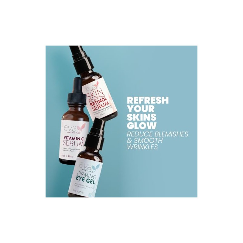 Eva Naturals Facelift in a Bottle - 3-in-1 Anti-Aging Set with Retinol Serum, Vitamin C Serum and Eye Gel - Formulated to Reduce Wrinkles, Fade Dark