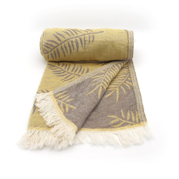 Evagone Jacquard Premium Peshtemal Lotus Pattern (Beach Towel aslo for Bath, Sauna, SPA or Gym) (Mustard)