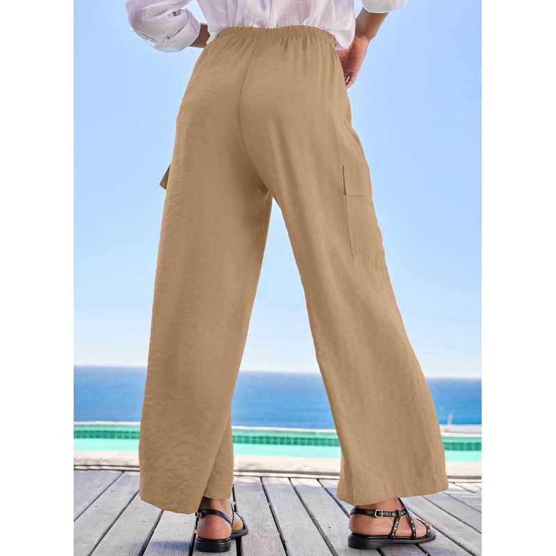 EVALESS Casual Cargo Pants for Women High Waisted Wide Leg Baggy Palazzo Trousers Travel Outfits Parchment L