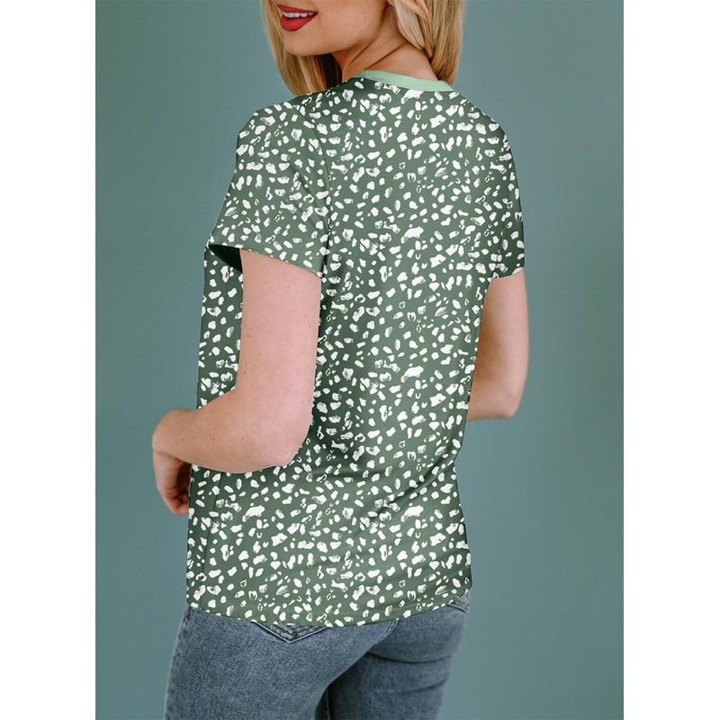 EVALESS Womens Summer Polka Dots Tops 2025 Short Sleeve Round Neck T-Shirts Lightweight Loose Tee Shirts Green X-Large