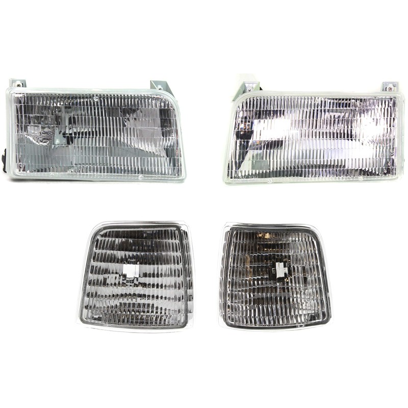 Evan Fischer Driver and Passenger Side Headlight Kit for Ford F-150 1992-1997 Halogen With bulb(s) W/Corner Light Replaces# F2TZ13008A F2TZ13008B F2TZ15A201D F2TZ15A201C
