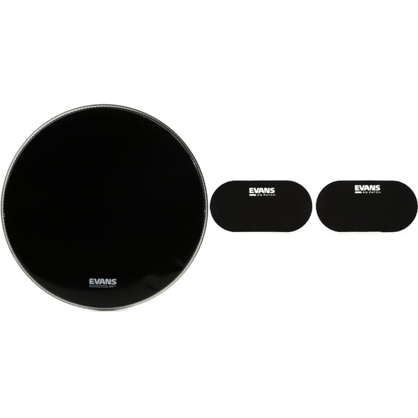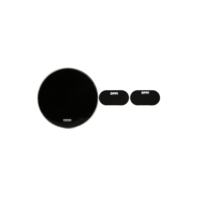 Evans Resonant 22 inch Black Bass Drumhead and PB2 Double Bass Drum Patch Pair