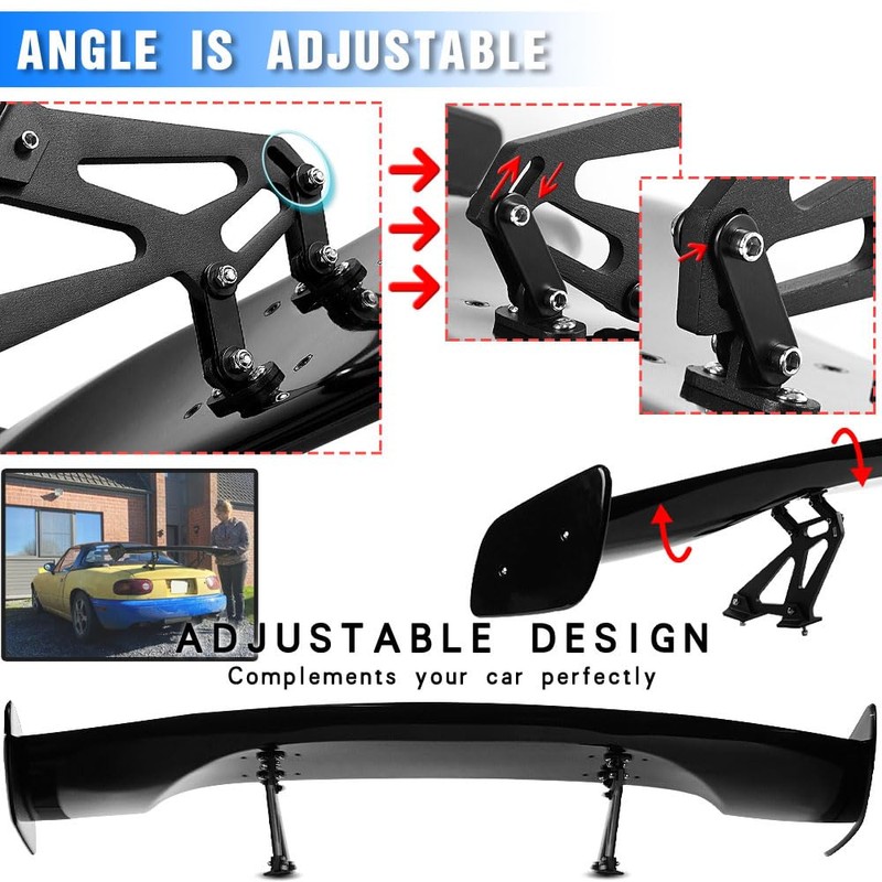 - AERODYNAMIC PERFORMANCE AND ADJUSTABLE ANGLE: This GT Tail Spoiler features a single-layer design that enhances aerodynamic performance by reducing overall drag. It helps to increase the downforce of the car and maximize contact with the ground for maximum traction and grip, improved stability and reduced fuel consumption. The angle can be easily changed by adjusting the outer brackets to fully customize the total downforce of the car