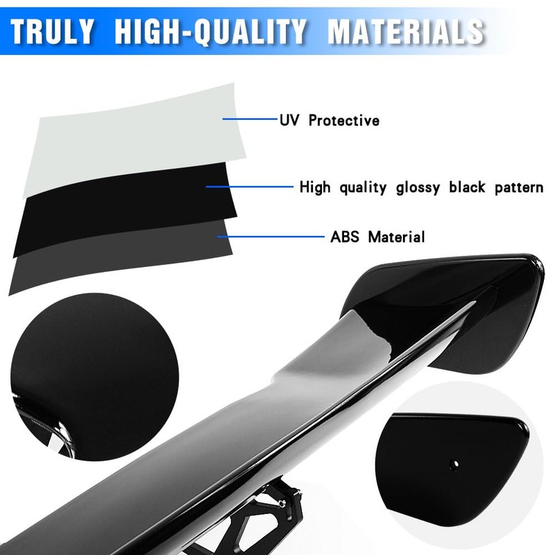 - STYLISH DESIGN: The GT style universal spoiler allows your car to show off its dynamic lines for a sporty, dominant look. It's the perfect way to make your car stand out. The sleek gloss black finish gives your car an attractive and unique look