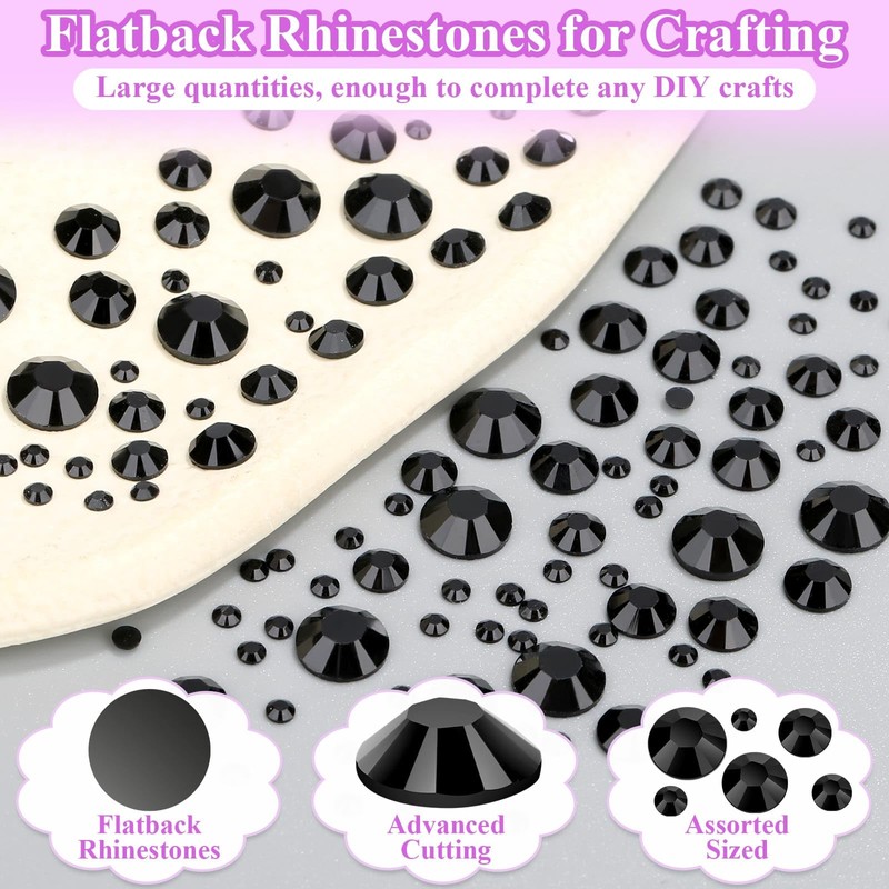 Evatage 16500 Pcs Black Rhinestones with B7000 Glue for Crafting, Black Flatback Rhinestones Gems Bulk with Glue Kit for Fabric Cloths Tumbler Cups Shoes DIY Crafts