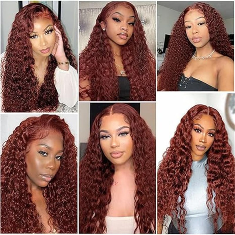- Deep wave wig human hair colour: Reddish brown human hair wig, fashionable and versatile, showcasing temperament.
