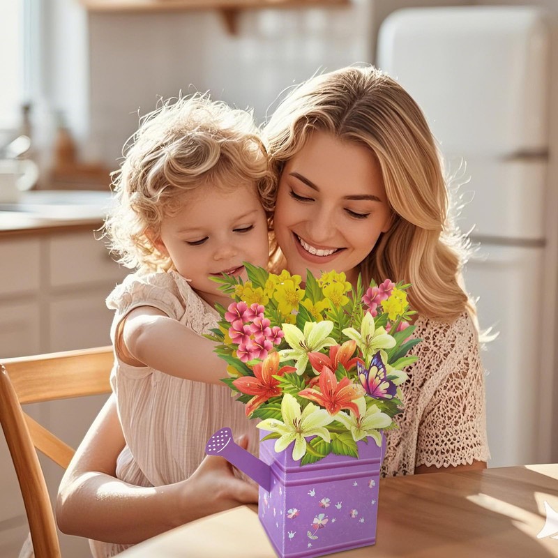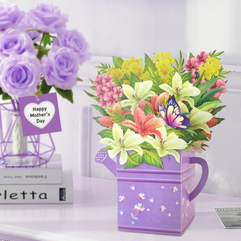 - 💐【3D POP UP SURPRISE CARDS】 Vibrant 3D florwer and Butterfly stands embracing each other in the center of the watering,bloom their beauty,this surprise, magic design for adding a touch of surprise and fun to Mother's Day. Your mom will love this paper flower bouquet card with its chic design.