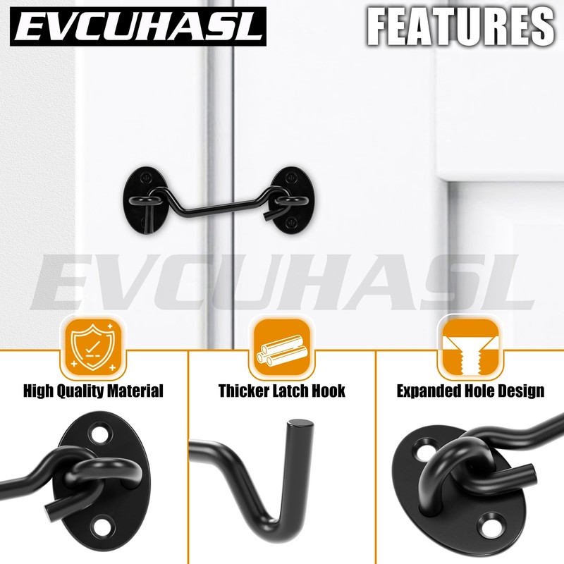 - 【3 Inch Hook and Eye Latch】EVCUHASL's latches are made of premium solid stainless steel, treated with ultra-high-temperature double-layer matte black coating. Features exceptional durability, corrosion resistance, oxidation resistance, and rustproof properties. Seamless one-piece construction ensures lasting strength.