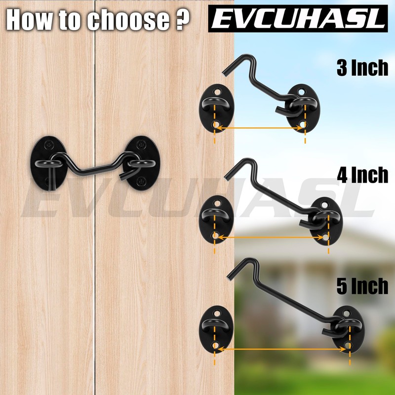 - 【5 Inch Hook and Eye Latch】EVCUHASL's latches are made of premium solid stainless steel, treated with ultra-high-temperature double-layer matte black coating. Features exceptional durability, corrosion resistance, oxidation resistance, and rustproof properties. Seamless one-piece construction ensures lasting strength.