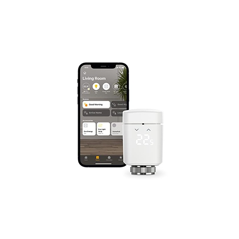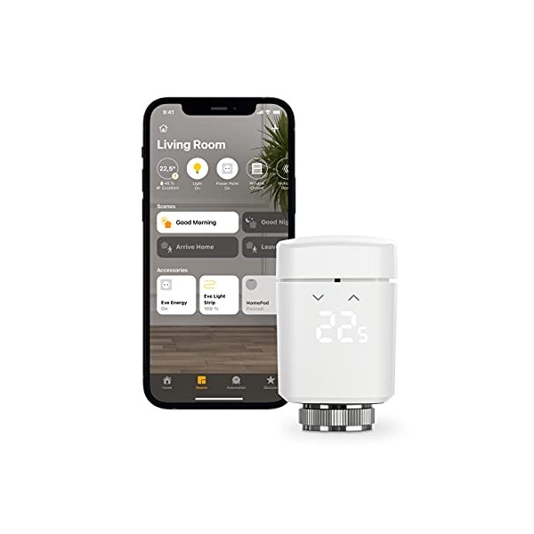 Eve Thermo - Smart Radiator Valve with LED Display, Automatic Temperature Control, no Bridge Required, Integrated Touch Controls, Bluetooth, Thread,Apple HomeKit, Made in Germany