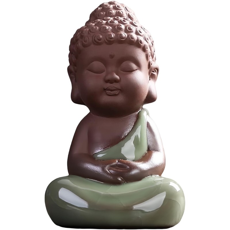 EVECILOO Ceramic Cute Baby Buddha Statue, Purple Clay Peaceful Rulai Buddha Statue, Happy Baby Buddha Statue, Monk Figurine, Office Desktop Mini Statue, Tea Ornaments, Monk Home Decoration (1)