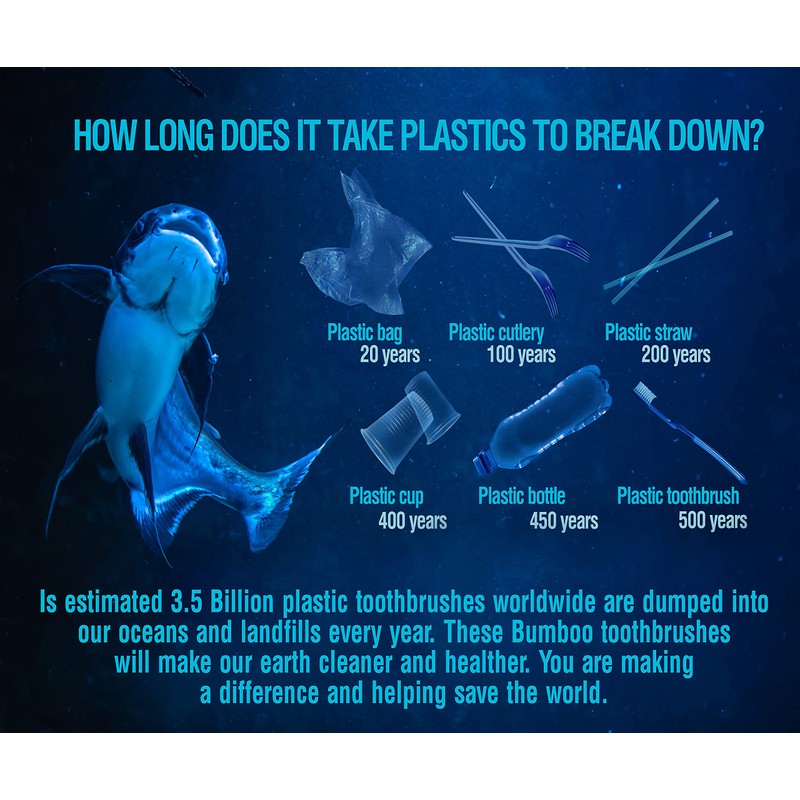 🍀 GO GREEN, LIVE ECO-FRIENDLY & MAKE A DIFFERENCE TO THE ENVIRONMENT: Its estimated there are more than 5 billion plastic toothbrushes are dumped into our landfills and oceans every year worldwide. Start making a difference today, by reversing that number by 4 less toothbrushes. You will be making an environment difference in a lot of ways versus the traditional plastic toothbrush. Buy our 4 pack of natural-made wooden bamboo toothbrushes which are nontoxic, 100% BPA Free, PVC Free as well as being Biodegradable & Compostable.