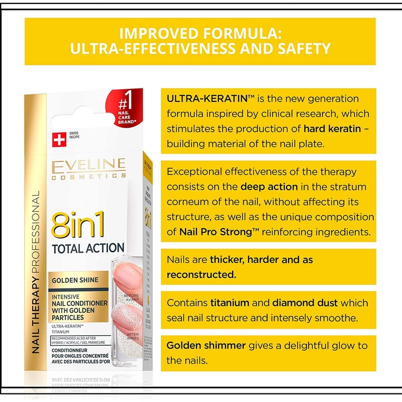 - Eveline 8in1 Total Action Nail Conditioner with Gold Particles 12 ml