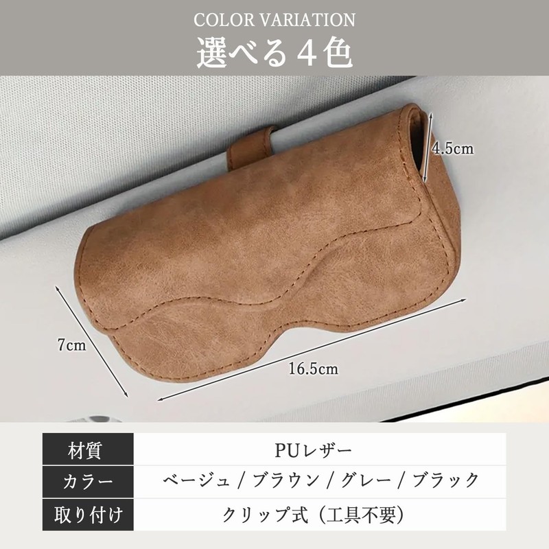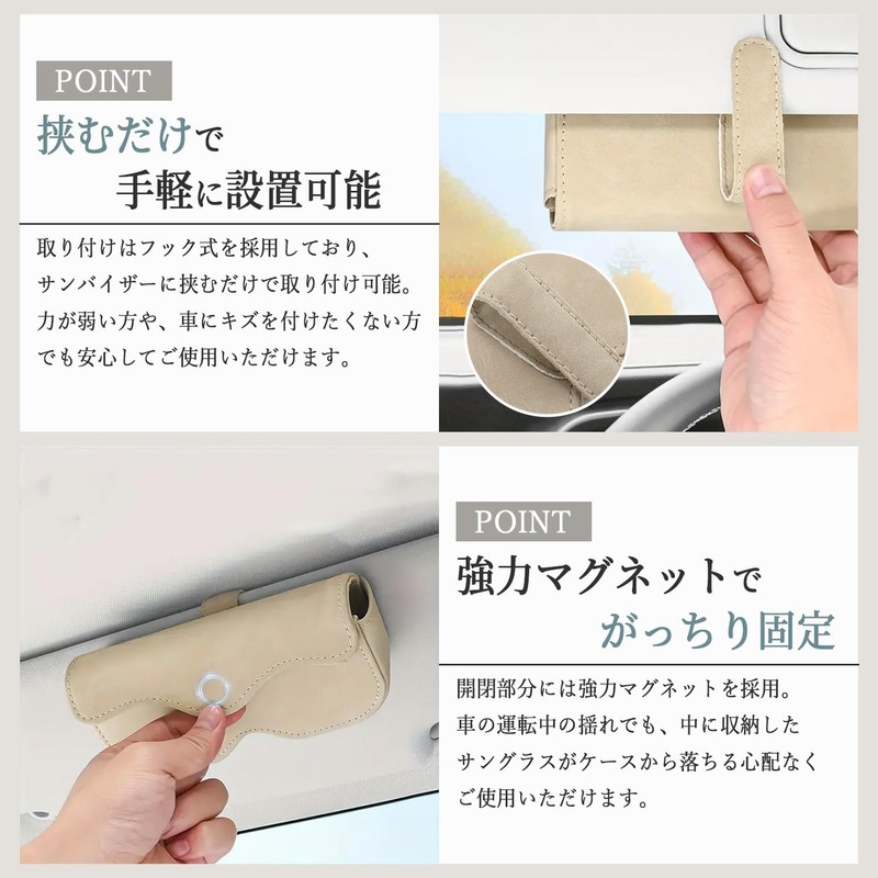 Evello Sunglasses Holder for Cars, Leather, Magnetic, One-touch Open/Close, Scratch Resistant, Compatible with Many Models, gray