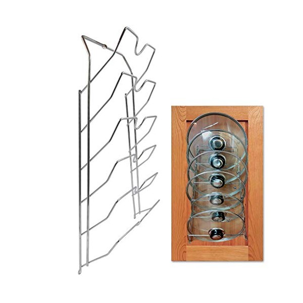 Evelots Pot Lid Storage-Cabinet Door/Wall-Organizer-6 Pot/Pan Covers-Chrome