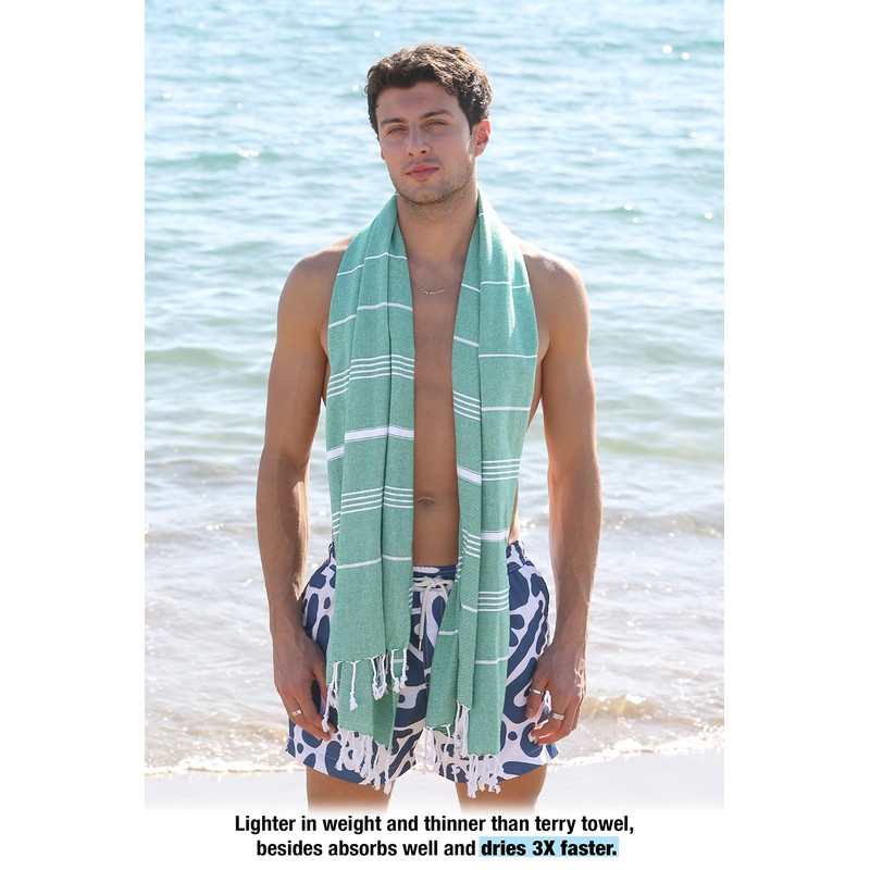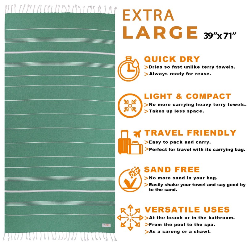 Evelynen Turkish Beach Towels Oversized 39x71 – Sand Free – Quick Dry – Pool – Camping Towel – Benetton Green