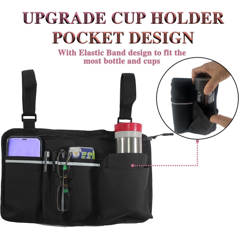 - ✅[Multi-functional wheelchair bag] can also be used as a cup holder, the pocket has elastic, you can put the bottle straight. Don't worry about leaks.