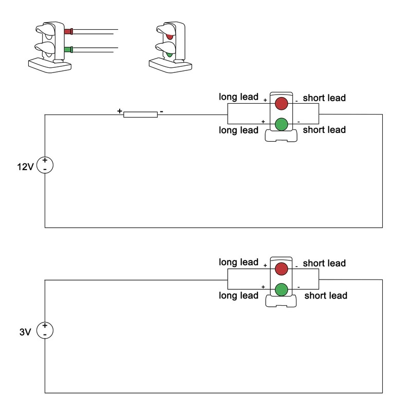 10pcs signal Heads & 10pcs 3mm Green leds & 10pcs 3mm Red leds.