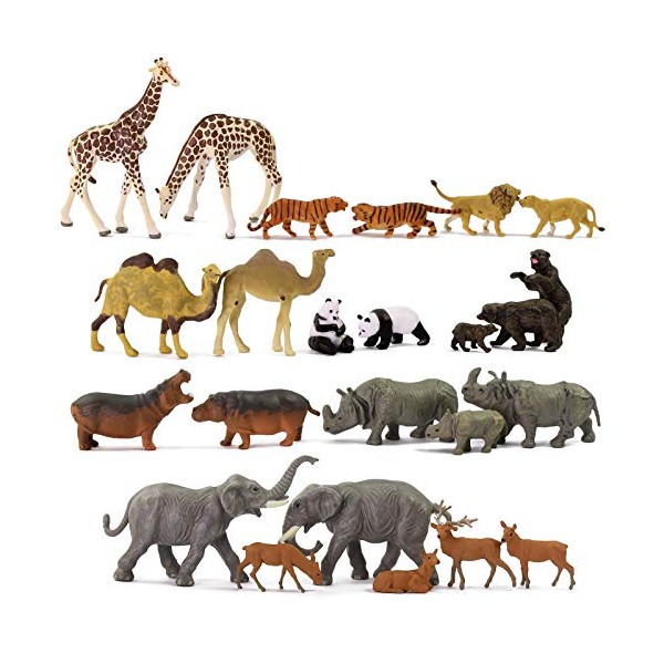 Evemodel 24pcs Model Train H0 Scale 1:87 Wild Animals PVC Elephant Camel Giraffe Panda