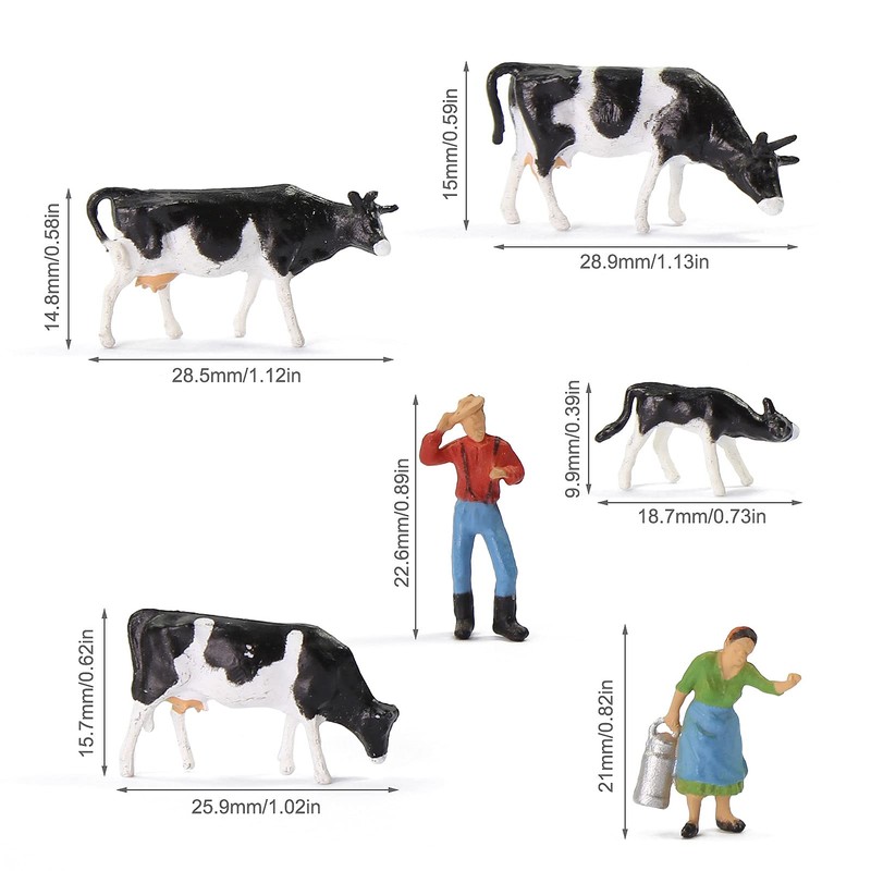 36pcs:32pcs painted cows,8 different poses,4pcs of each;4pcs painted figures,2 different poses,2pcs of each. - Educational toys: provide information about farm animals and encourage compassion for animals.