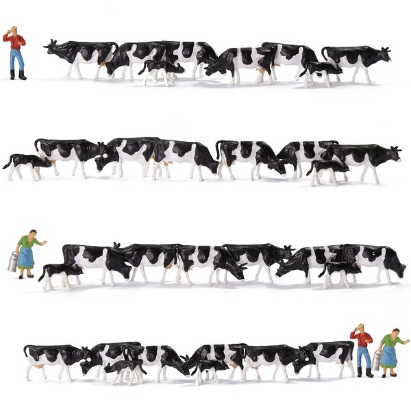 Evemodel 36pcs Model Trains Painted Herder Farm Animals HO Scale 1:87 Black White Cows
