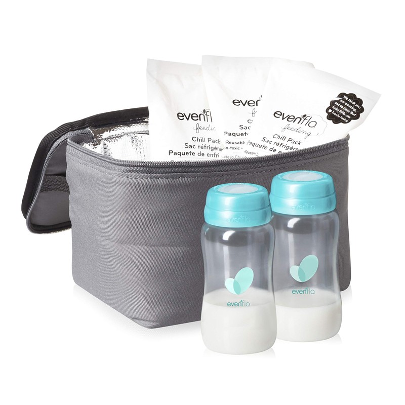 - Cooler storage: The insulated bag helps keep your breast milk cold longer, storing up to six Evenflo milk Collection bottles and three Evenflo ice packs.