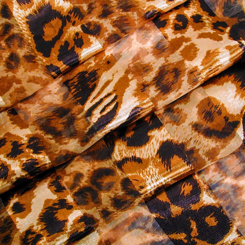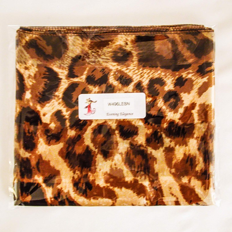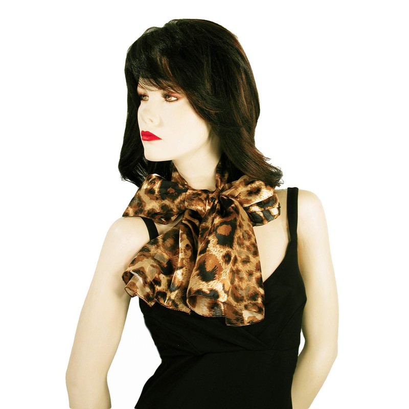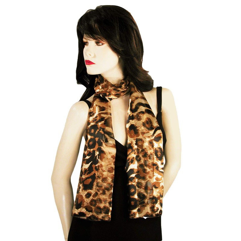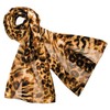 Evening Elegance Animal Print Long Silky Satin Chiffon Neck Scarves, Several Styles, Brown Large Print, Medium