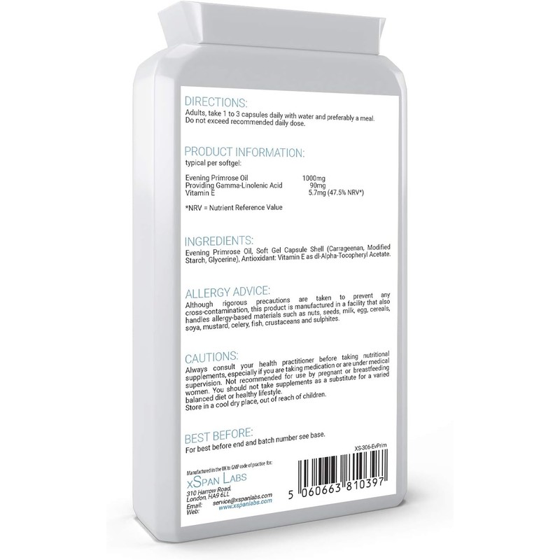 Evening Primrose Oil 1000mg - 90 Vegan Capsules | Cold-Pressed, High GLA with Vitamin E | Non-GMO | Made in the UK