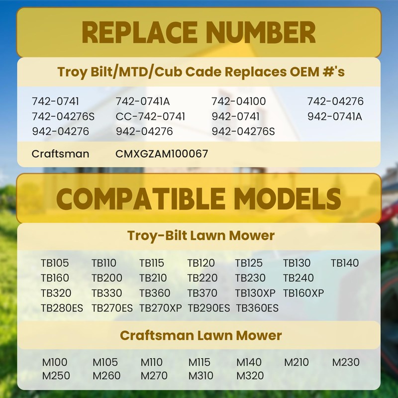 - 【REPLACE OEM #s】Designed for Mower Blade Troy Bilt/MTD/Cub Cade Replaces OEM #'s CC-742-0741 742-0741 742-0741A 742-04100 742-04276 742-04276S 942-0741A 942-0741 942-04276 942-04276S 490-100-C089 Craftsman OEM # CMXGZAM100067