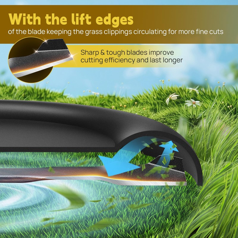 - 【ULTRA-EFFICIENT CUTTING & MULCHING】 50% Stronger Airflow Lift – With an upgraded 32mm lift height (vs. regular 28mm), this blade dramatically boosts grass collection, reducing time spent emptying the bag. Powerful suction prevents clogging for smoother, faster mowing—while precision-shredded clippings decompose naturally, enriching your lawn with vital nutrients.
