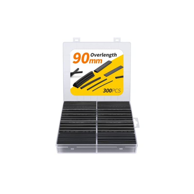EVENTRONIC Eventronic 90mm Extra Long Heat Shrink Tubing, 300PCS, 2:1 Shrinkage Rate, 6 Sizes, IP56 Waterproof, Used for Electrical Insulation and Wire Connectors, High Load Capacity, Black, Never Fading