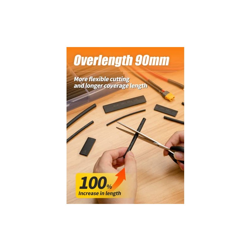 - 2025 New Upgrade: Multi-size and Overlength Heat Shrink Tubing Kit90mm, Inner Diameter1.5mm / 2.5mm / 4mm / 6mm / 10mm / 13mm.