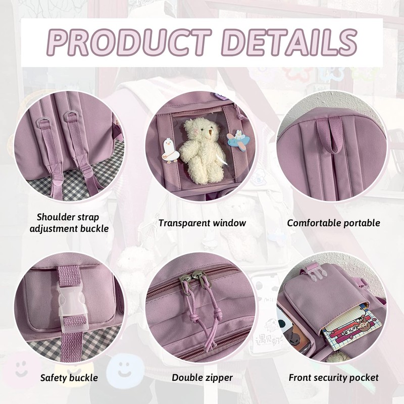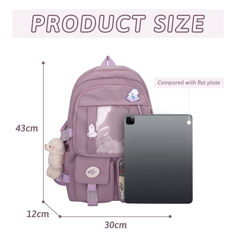 - The backpack is equipped with beautiful pins and pendants. You can also build the backpack with other accessories you have. This backpack is lightweight but robust with function.