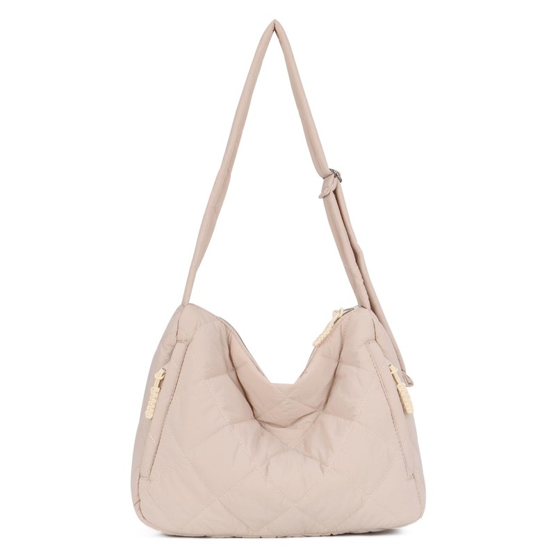 EVEOUT Puffer Shoulder Bags Women's Large Quilted Shoulder Bags Lightweight Puffy Tote Shopper Quilted Shoulder Bags Carry Bag Work Bag, beige, hobo