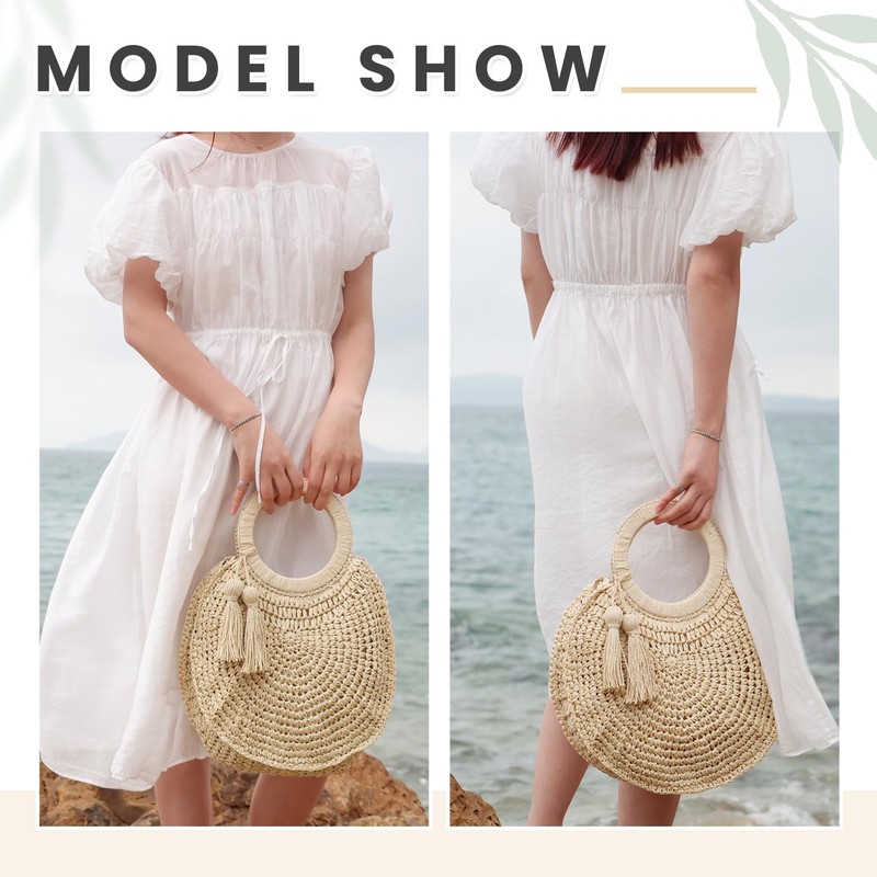 - Box contents: 1 x straw fabric handbag. This straw bag has a cute and novel round appearance and a sufficiently large capacity, making it a good holiday gift for women or girls.