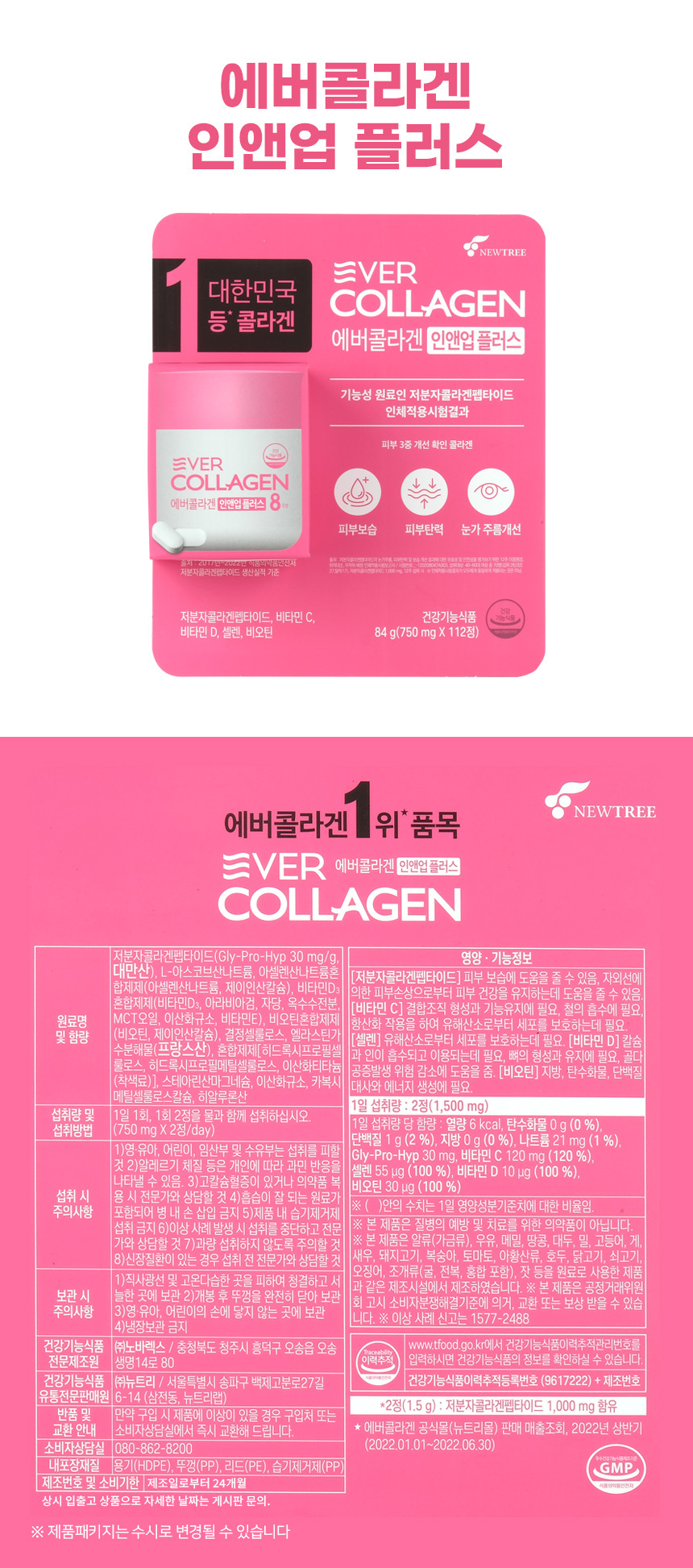 Ever Collagen In&Up Plus 750mg 112 tablets 1ea / 에버콜라겐 인앤업 플러스 750mg 112정 1개