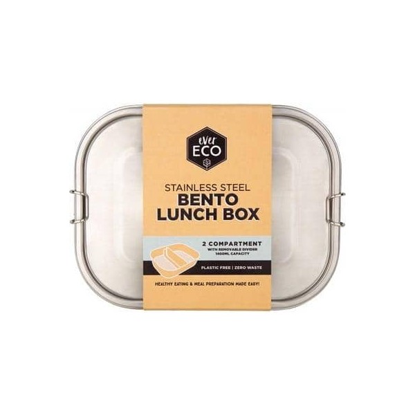 Ever Eco - Stainless Steel Bento Lunch Box - 2 Compartment with Removable Divider (1.4L)